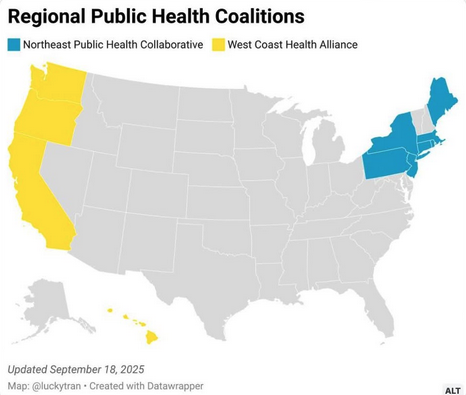 Some states are already engaging in what some have called “soft secession” by creating regional compacts that work around federal dysfunction. One example is the recently formed West Coast Health Alliance (plus a similar effort formed in the Northeast) to bypass RFK, Jr.’s anti-vax policies and keep state citizens healthy based on actual science. There is a similar regional compact around climate science in the face of an administration that irrationally hates windmills, supports “Drill, baby, drill,” and wants to make coal great again.